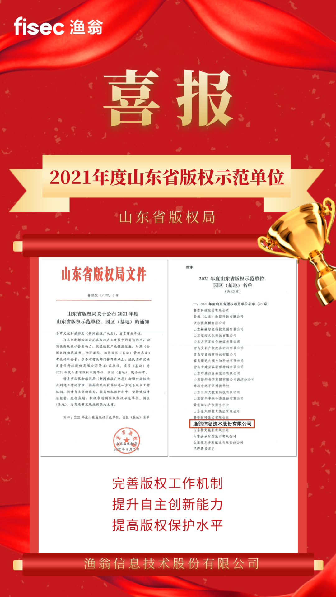 【喜讯】sbobet利记(中国)信息荣获“2021年度山东省版权示范单位”