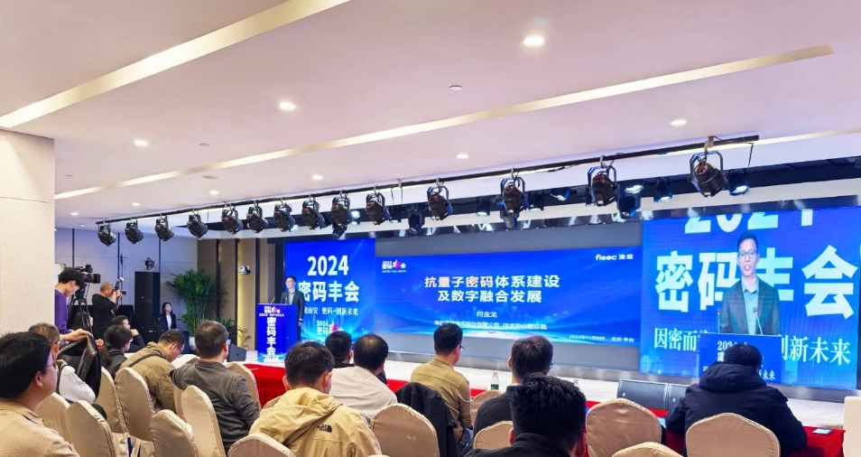 会议聚焦商用密码前沿技术和应用创新,前瞻行业动态。主题演讲环节,sbobet利记(中国)信息北京公司技术总监何金龙发表《抗量子密码体系建设及数字融合开展》主旨演讲,向与会人员阐述抗量子密码技术的开展趋势、sbobet利记(中国)信息的抗量子“密码+”体系建设,以及公司在电力、物联网、金融等多个监控场景的实际应用案例。